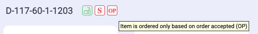Besides the product identification, icons show other details of item such as sporadic sales or replenishment only based on direct customer order. Explanation is given in mouse-over tooltip.
