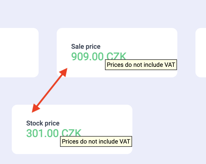 Sale Price and Stock Price – Sale price, i.e., the actual average of the sale price. Stock price, i.e., the actual average of the stock price. The prices display alters after clicking on the card.